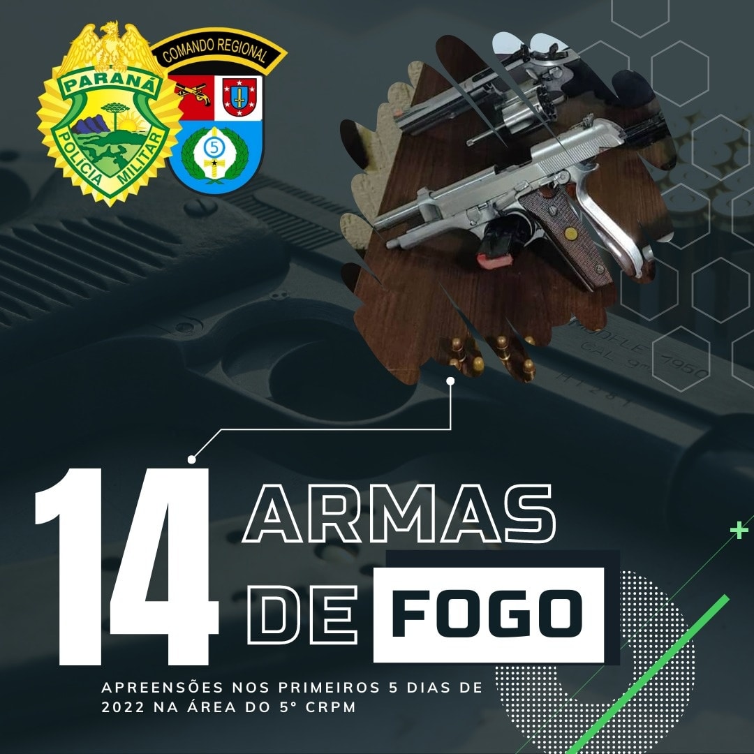 Nos primeiros cinco dias de 2022 os números de apreensões de drogas e armas são positivos na área do 5º Comando Regional de Polícia Militar. Até o momento, já foram contabilizados mais de uma tonelada de maconha apreendida e 14 armas de fogo retiradas de circulação.